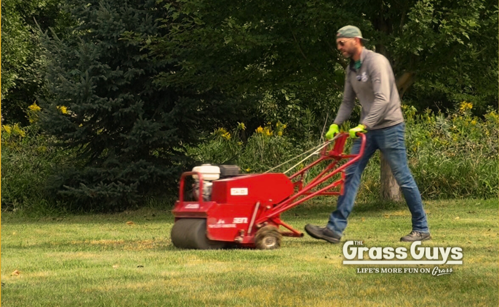 Aeration and overseeding are often performed together because aeration holes create ideal locations for grass seed to settle and germinate.
